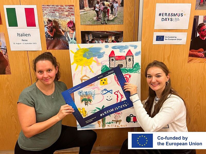 Die Hilfsgemeinschaft präsentierte im Rahmen der Erasmus Days eine barrierefreie Fotoausstellung, die Einblicke in vergangene und kommende Erasmus-Bildungsreisen bot.