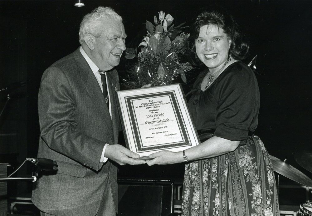 Weihnachten 1968 erfolgte der erste „Auftritt“ von Eva Fichte zugunsten der Hilfsgemeinschaft. Sie lieferte ehrenamtlich Wäschepakete für blinde Menschen aus. In den Folgejahren erfreute sie die Bewohner unserer Seniorenwohnhäuser in Niederösterreich mit ihren künstlerischen Darbietungen. Unzählige Male trat sie mit Liederabenden, Lesungen oder bei unserer beliebten Weihnachtsfeier auf. „Ich arbeite einfach gerne. Und es ist ein schönes Gefühl, wenn von uns, die wir auf der Bühne stehen, etwas hinunterkommt und vom Publikum etwas herauf. „Die Schauspielerei“, sagte Eva Fichte, „liebt man, oder man macht sie nicht.“ Insgesamt war Eva Fichte neben ihrer Schauspielkarriere über 50 Jahre als Botschafterin für die Hilfsgemeinschaft aktiv.