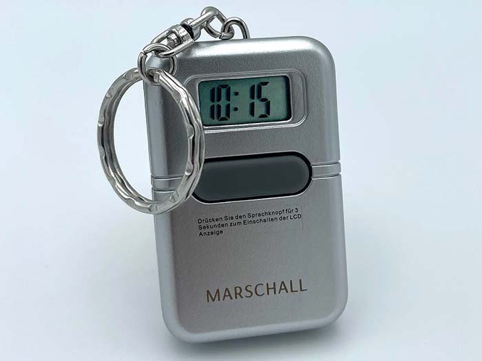 Wer unterwegs ist, hat meistens eine Sache griffbereit parat: seinen Schlüssel. Warum diesen permanenten Begleiter also nicht mit sinnvollen Zusatzfunktionen ausstatten? Für diesen Zweck gibt es einen absoluten Klassiker unter unseren Hilfsmitteln – den sprechenden Schlüsselanhänger. Manchen ist er dennoch vielleicht noch unbekannt, daher möchten wir dieses praktische Hilfsmittel hier einmal vorstellen. Wecker und Zeitansage Im Grunde verbirgt sich in dem unauffälligen Gerät eine Digitaluhrmit verschiedenen Funktionen: