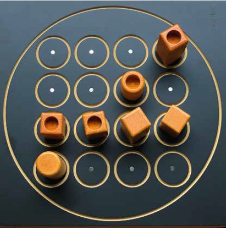 Zwei Personen können auf 4 x 4 Feldern mit 16 Spielsteinen ihr helles Köpfchen beweisen, die Regeln sind dabei einfach.