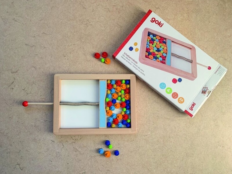 Das qualitativ hochwertig verarbeitete Spiel der Firma Goki besticht durch einen stabilen Holzrahmen und farbenfrohe Spielsteine. Ziel des Spieles ist es, möglichst viele Steine zu entnehmen, ohne andere Steine zu bewegen, und dabei möglichst viele Punkte zu sammeln. Wird ein Stein bewegt muss dieser zurückgelegt werden und der nächste Spieler ist an der Reihe.