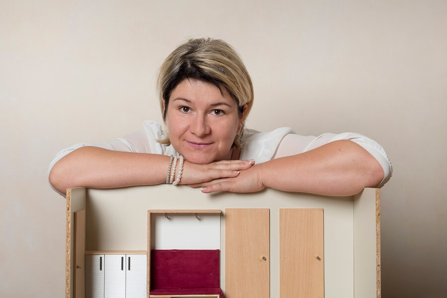 „Die Haptik spielt bei visuell beeinträchtigten Menschen natürlich eine entscheidende Rolle. Wir mussten viel dazulernen und umstellen. Wir verwenden beispielsweise keine normalen Hölzer. Zur Bemusterung haben wir eigene Holzmuster kreiert – ohne Oberfläche und mit herausgearbeiteter Holzmaser – um die Strukturen besser ertasten zu können. Farben erklären wir immer mit Bezug auf ein Gefühl oder einen Geschmack. Dunkles Rot kann dann schon mal wie ein guter Rotwein oder helles Birkenholz wie Meloneneis beschrieben werden. Auf diese Weise konnten wir die besten Erfolge erzielen.“