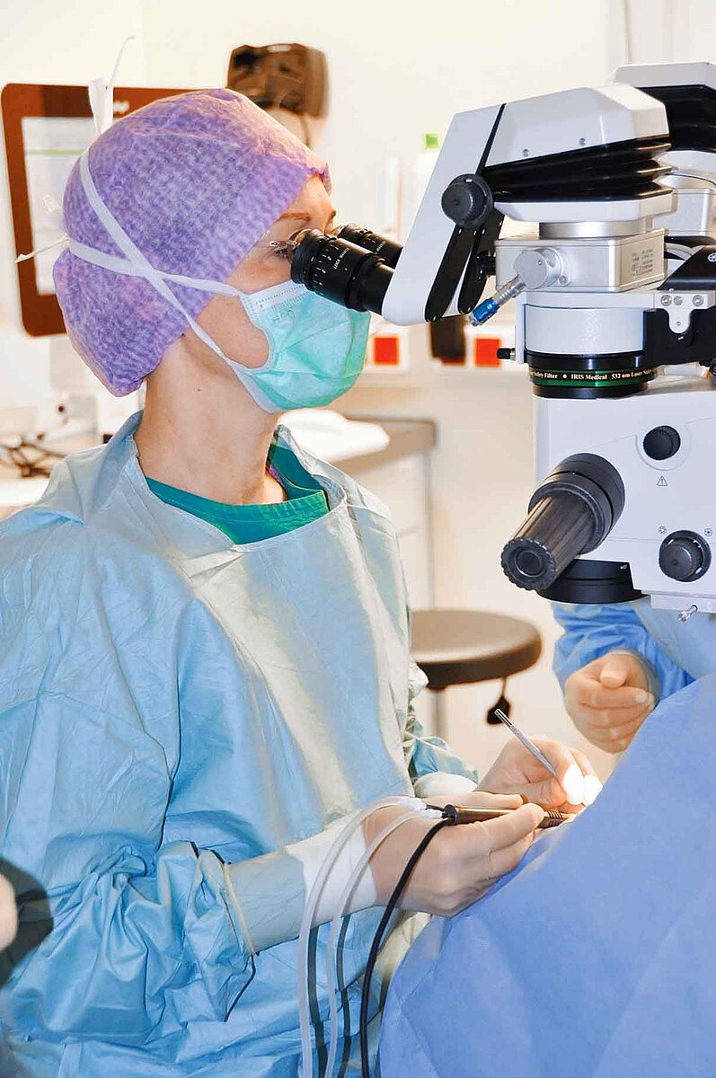Zum Arbeitsalltag von Vécsei- Marlovits gehört auch allerlei Organisatorisches: Sie ist u. a. für das Personalmanagement verantwortlich, kümmert sich um die Umsetzung von Zielvorgaben, implementiert neue Erlässe und sorgt für die notwendige Umstrukturierung der Abläufe. Die 64 Mitarbeiterinnen und Mitarbeiter ihrer Abteilung sind bestens vertraut mit Qualitäts- und Risikomanagement. „Im Ambulanzbereich gibt es klare Verantwortlichkeiten, alle Mitarbeiter wissen schon im Voraus, welche Aufgaben auf sie zukommen. Ganz genaue Dienstpläne und eine klare Zuteilung sind ein wesentliches Führungsinstrument“, erläutert die Primaria. Im Rahmen der Tagesklinik werden ganztags Katarakt-OPs durchgeführt. Auch hier ist sie im Einsatz, zu ihren Spezialgebieten zählen Katarakt, Glaskörperchirurgie, Netzhautablösungen und Makulaerkrankungen.