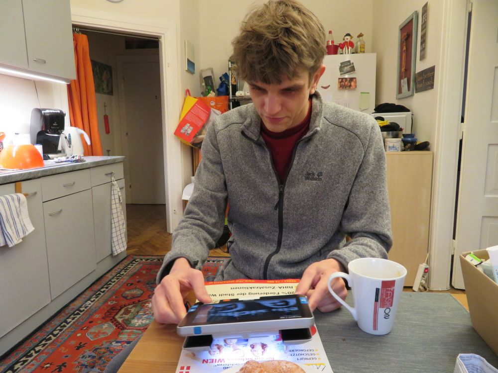 Darf ich Menschen auch erwähnen? (lacht) Meine Mutter sowie Freunde und Freundinnen sind mir eine große Hilfe im Alltag. Auch das Smartphone hat viele Funktionen, die ich nützlich finde. Microsoft Seeing AI finde ich auch praktisch. Das ist eine App, mit der man sich Gegenstände vorlesen lassen kann. Wenn ich aber beispielsweise im Billa bin, ist mir das zu mühsam. Da frage ich lieber einfach bei den Mitarbeitenden nach.