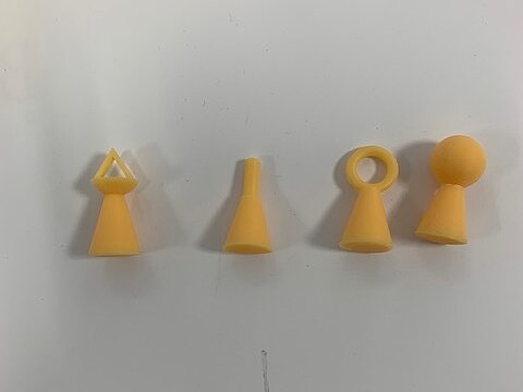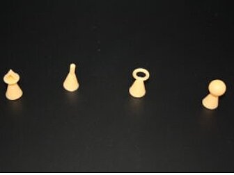 This set of six tactile board figures, enables blind players to identify their figures by the shape of the top.